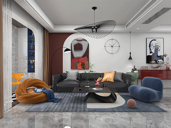 曲靖旺角时光混搭风格装修设计案例100平米实景效果图