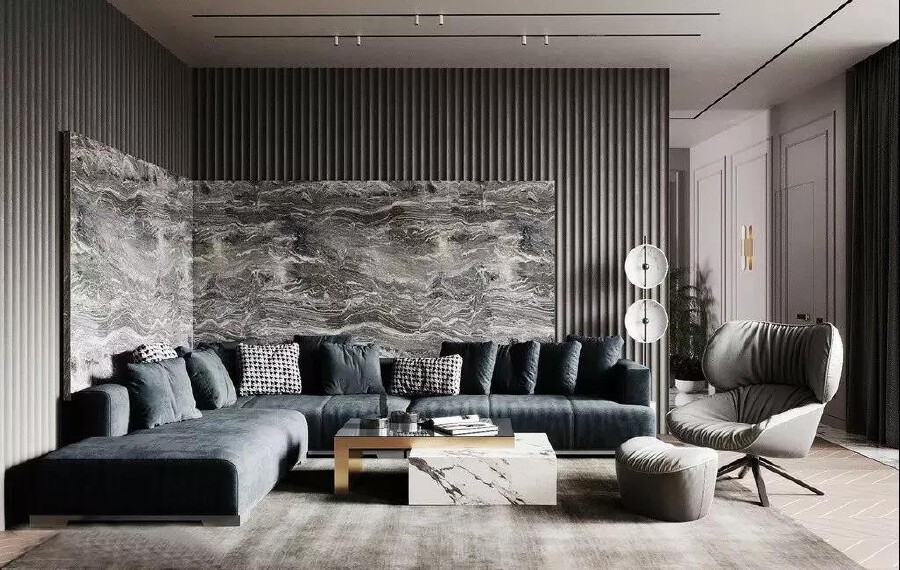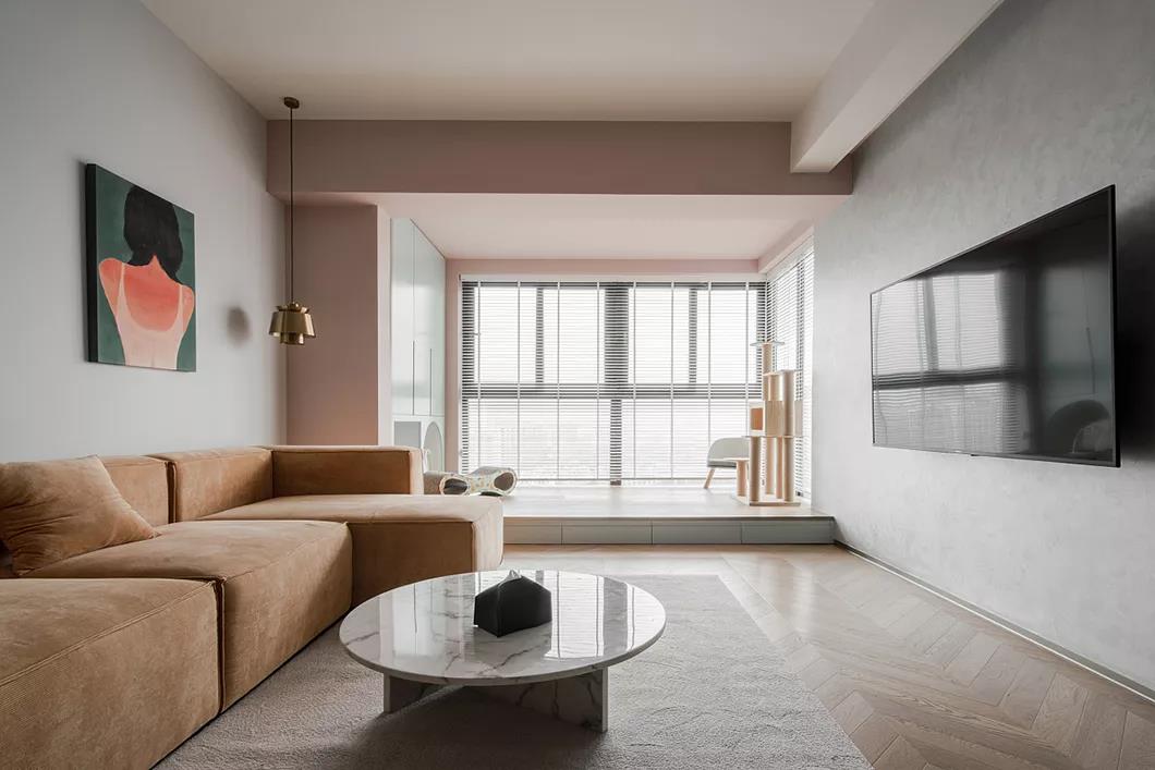 蒙自瀛洲河畔现代风格装修设计案例120平米实景效果图