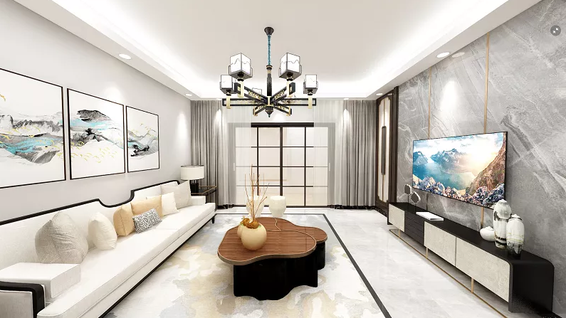 贵港国宾首府139平米装修设计案例新中式风格设计案例效果图